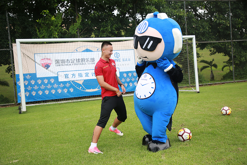 會后,雙方嘉賓移步至足球場觀看深足球員馳騁球場的颯爽風(fēng)姿,一睹球員訓(xùn)練風(fēng)采。雷諾表品牌IP雷小諾也出現(xiàn)在球場,與球員們踢球互動。戲精雷小諾奔跑在球場上,三招兩式,踢球翻身現(xiàn)場就引來熱情圍觀。