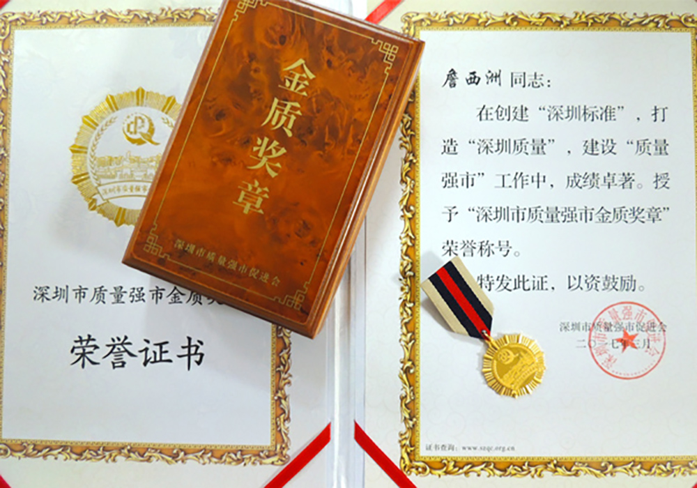 “深圳市質(zhì)量強市金質(zhì)獎章”于2013年設立,是深圳市最高個人質(zhì)量榮譽。