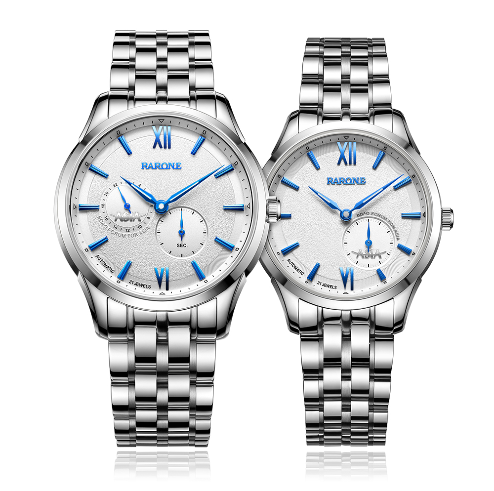 2016年新品以男女對表形式呈現,搭載進口全自動機械機芯,透視底蓋清晰可見機芯運作。男女表在設計細節上做了區別,更加匹配男女士對美的不同追求。除了經典的黑色,間金色之外,新款首次采用鋼藍色表針和字釘,為商務用表融入活力元素,同時視覺上更加清爽。大兩針搭配60秒功能小眼顯示時間,為當下手表的熱門設計,男表9時位增加一個24小時功能小盤,方便知曉和調教多維度時間。表盤上的“ASIA”標識體現腕表的身份和紀念價值。