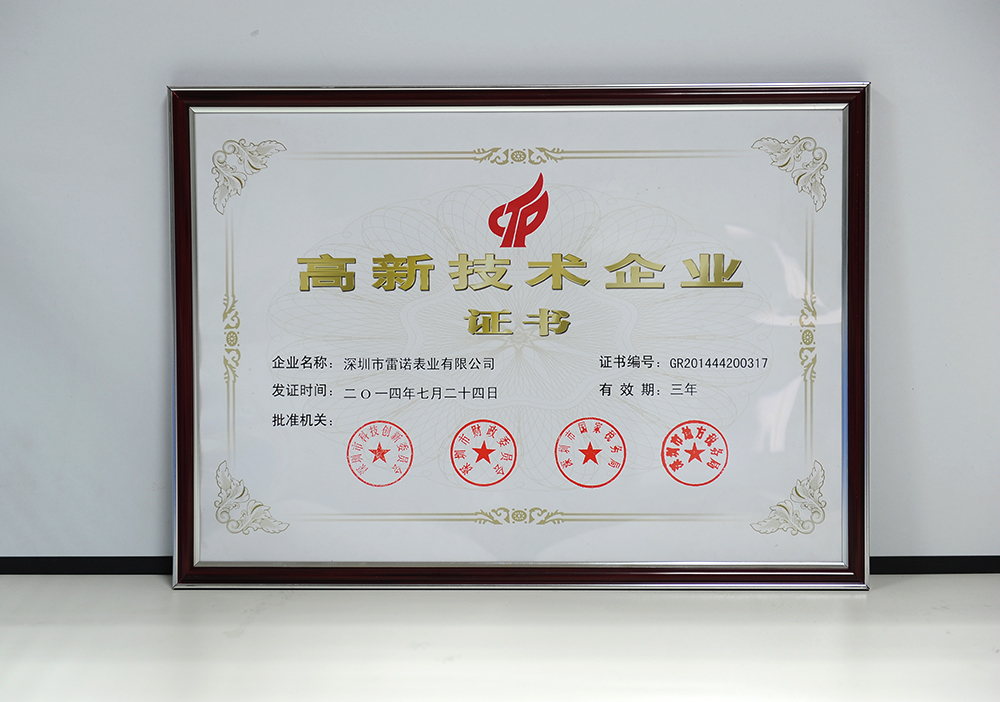 經過國家科技部、財政部等相關部門的嚴格審核,雷諾表被認定為“國家級高新技術企業(yè)”!這標志著雷諾表在自主知識創(chuàng)新、核心專利產權,科技技術研發(fā)及成果轉化方面,均達到行業(yè)水平,且在鐘表領域中具有較強的市場價值和資本價值。