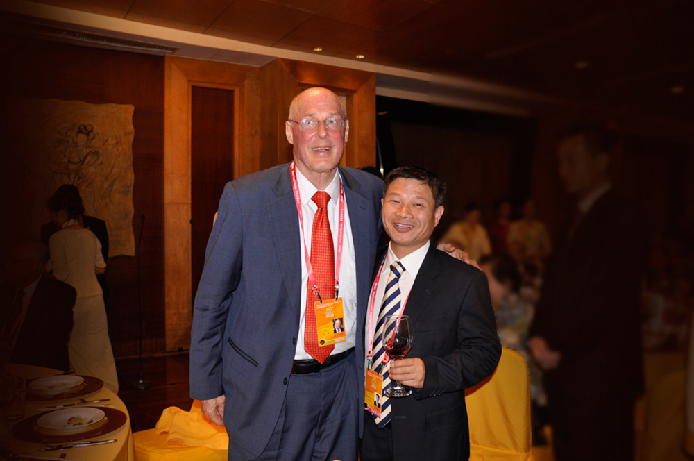 雷諾表業(yè)董事長詹西洲先生(右一)與美國前任財政部長亨利•保爾森在博鰲晚宴親密合影